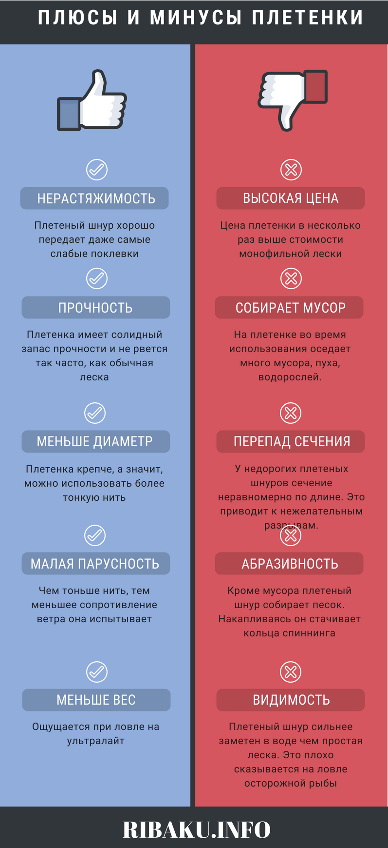 Для справедливости обзора отметим ряд недостатков продукта, среди которых высокая стоимость плетёнок, меньший срок службы по сравнению с монофилом, высокая степень влагонасыщения материала и вытекающий из этого негатив в виде обмерзания шнура при отрицательных температурах, недостаточная стойкость к истиранию. Низкий коэффициент растяжения отрицательно влияет на качество процесса вываживания, требуя включения в оснастку шок лидера для фидера или применения фидергамов.