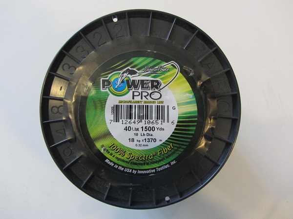 - Отличный износостойкий плетеный шнур — Power Pro Moss Green. Этот американский шнур выполнен из волокна Spectra Fiber. Отличается большой стойкостью к истиранию, высокой эластичностью, нерастяжим, не имеет памяти. Завязанные узлы крепкие. Способен на приличные подачи кормушек.