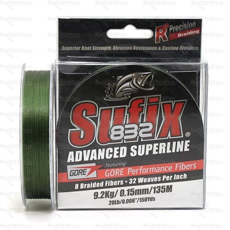 - Sufix 832 Braid Lo Vis Green. Мягкий, но качественный восьмижильный шнур. Отлично показывает себя при ловле на водоемах, где дно изобилует камнями и мелкими ракушками. Обладает высокой чувствительностью и прочностью, но цена на изделие вполне доступная.