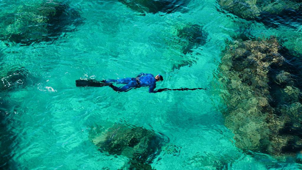 После погружения необходимо выполнить несколько мягких, плавных, размашистых движений ластами, амплитуда которых не должна превышать 90 сантиметров. Как только вы окажетесь на достаточной глубине, плавно зависайте в воде и осматривайте водное пространство на наличие добычи.
