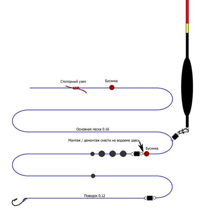 к содержанию ↑Монтаж скользящего поплавка для дальнего заброса
