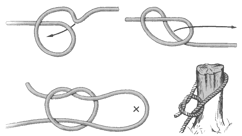 Этот метод универсален для всех видов материалов от флюорокарбоновой лески до жилы полевого кабеля. Возможно использование «бегущего узла» или узла «восьмерка».