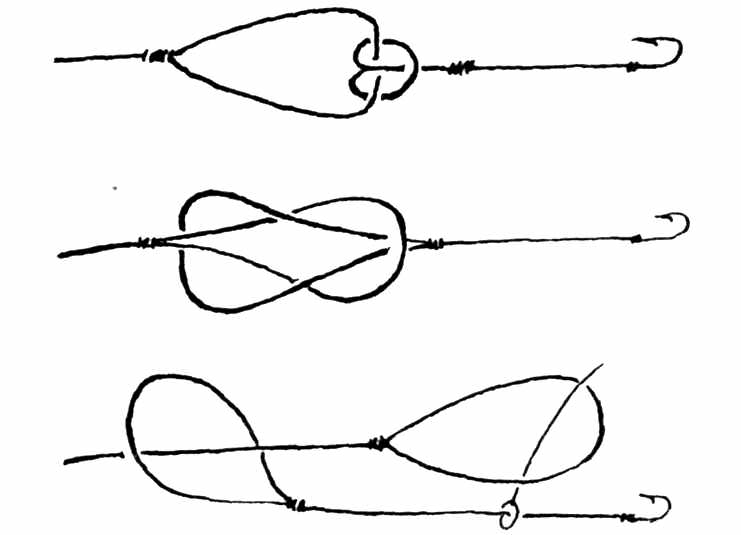 Заметим, что во втором ряду показано, как применить этот узел для связывания лески и поводка.