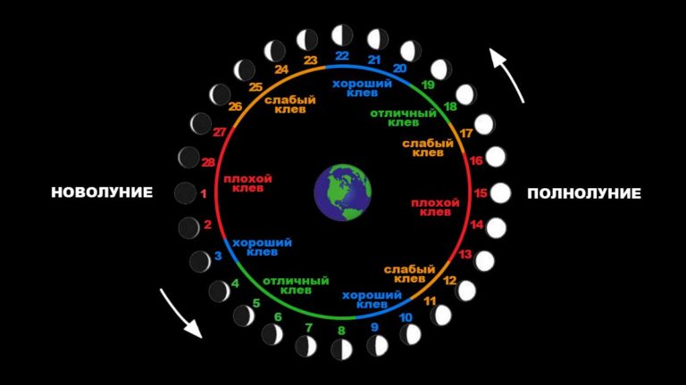 Это не совсем верное утверждение — на 3-10 дни после полнолуния небесное светило проявляет исключительную благосклонность к рыбакам и одаряет их неплохим уловом. Но как только половинка спутника Земли скрывается из глаз, клев сразу же становится вялым и остаётся таким вплоть до новой Луны.