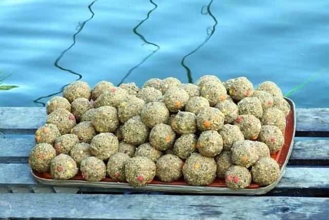 - Приманку формируют в виде шариков небольшого диаметра. По необходимости они обкатываются в панировочных сухариках.