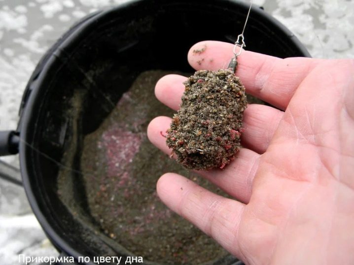 Прикормка в зимнее время по цвету не должна отличатся от естественной среды обитания леща, иначе она его просто отпугнет. В качестве приманки используют рубленый мотыль или червь вперемешку с грунтом.