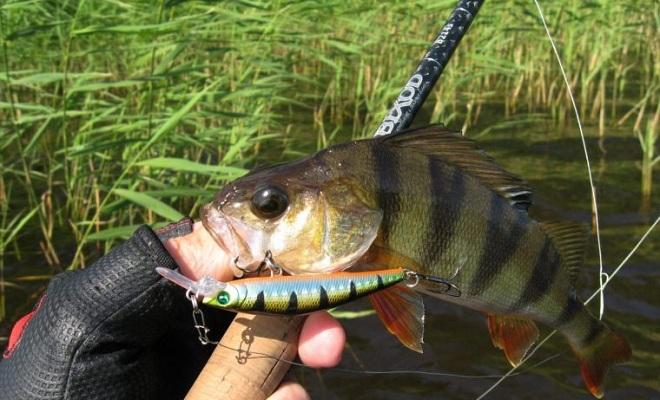 При спиннинговой ловле окуня одинаково эффективно использовать воблеры как рывковые, так и крэнки. Первые лучше ведут себя по теплой воде, где применяется равномерная проводка с паузами, а вторые – по холодной, их размер 5–8 см.