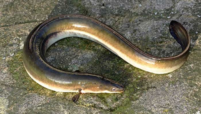 Речной угорь живёт в местах с несильным течением и глинистым дном. Хищник, похож на змею.