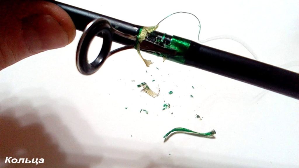 - Если поломка затронула лак колец спиннинга или повредила намотку которой кольцо крепиться к бланку то его проще снять и установить заново.