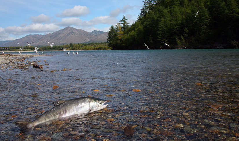 Именно в этот период времени на нерест в реке подымается кета, горбуша и другие лососевые.