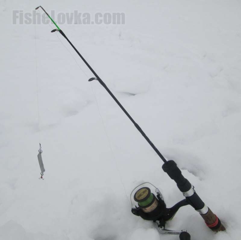 - После взмаха удочка опускается в исходное положение, а приманка, отклонившись от лунки, плавно возвращается обратно.