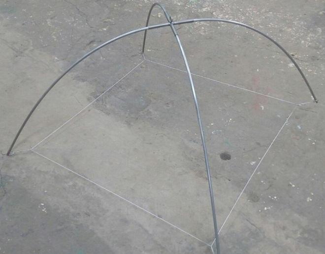 Для натягивания и крепления сети к дугам потребуется приобрести полимерную нить в диаметре 2–3 мм, чуть большую по размеру длины периметра сетки. Для изготовления дуг нужен жёсткий металлический пруток или арматура, не превышающие диаметром 3 мм.