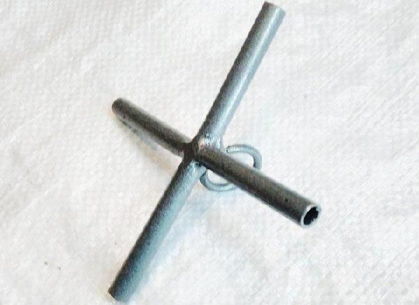 - Крестовина. Это верхняя часть и основа паука. Она состоит из двух сваренных перпендикулярно полых трубок, к которым сверху прикрепляется петля для верёвки.