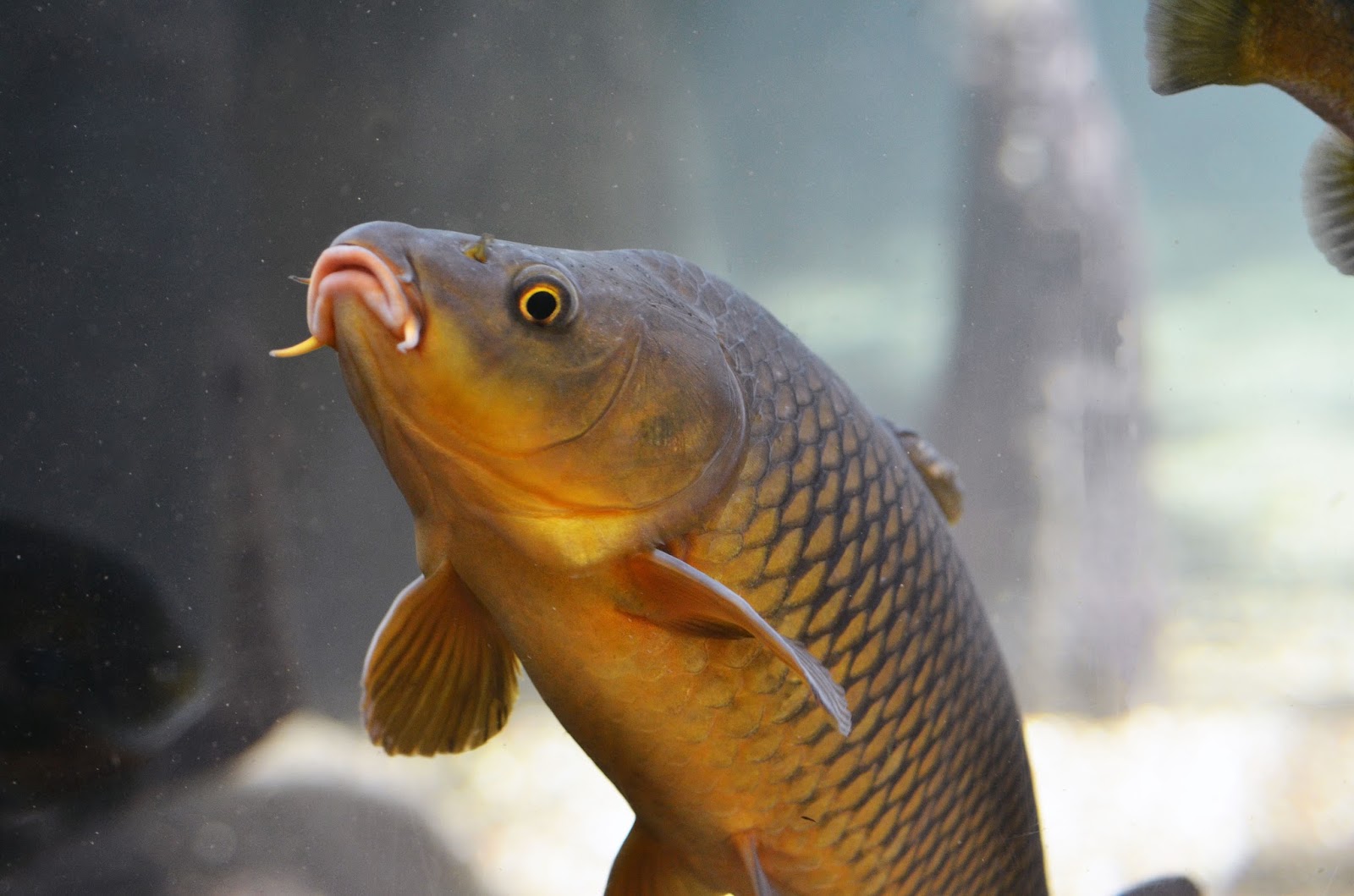 Перемалывать пищу рыбе помогают глоточные зубы, расположенные в 3 ряда. Они способны перетереть не только растительные волокна, но даже справиться с раковиной моллюска.