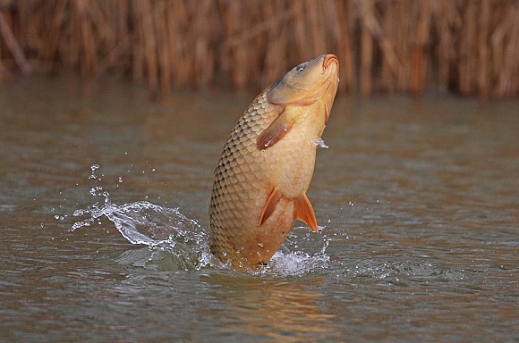 Сазан. Сазан выпрыгнул из воды.