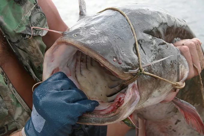 Здесь следует сразу оговориться, то наматывать леску на руку не стоит ни в коем случае. Сом, весом свыше 20 килограмм, может так натянуть шнур, что разрежет руку до кости.