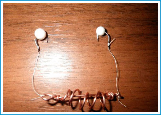 К каждому ушку необходимо привязать поводок с крючком. Вот и готова наша оснастка.