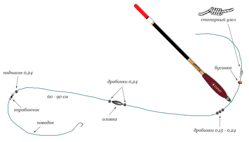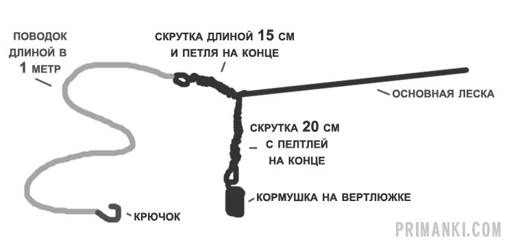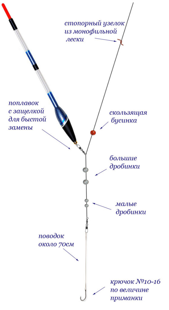 Этот вид оснастки кардинально отличается от всех предыдущих, здесь нет кормушек. Оснастка довольно простая и применяется довольно часто.