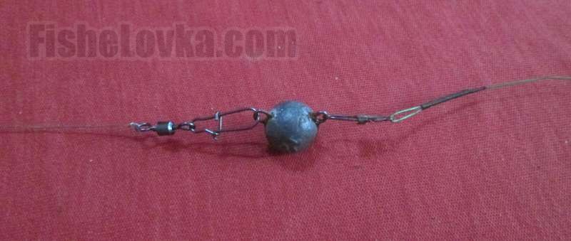 Можно также отдельно вязать основную леску и поводок к отдельным ушкам ушастого грузила. Такой способ изготовления монтажа немного более долгий, однако, приманка в таком случае приобретает определенную дополнительную подвижность. Масса грузиков в основном составляет от 2 до 4-5 граммов, использование больших грузил портит всю идею данной оснастки.
