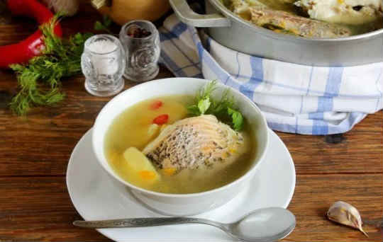 - Осталось налить 30 мл водки (не обязательно), мелко нарубленные ветки укропа, а последним – лавровые листы. Накрыв крышкой, дать супу 10 минут настояться.