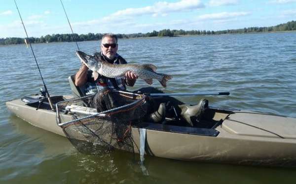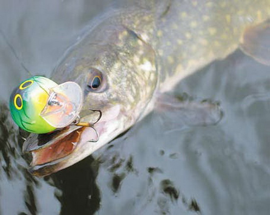 Тысячи крупных щук. североамериканских форелей и лососей было поймано с помощью грузил весом 3 — 5 килограммов и тяжелых снастей для морской рыбалки.
