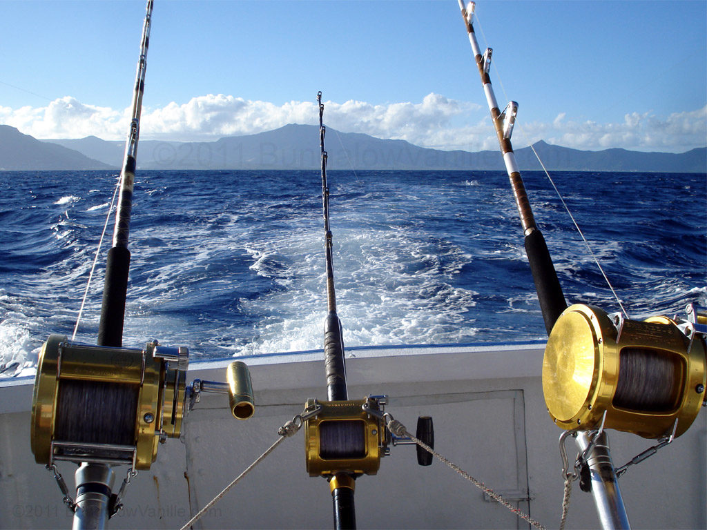Обычно такие удилища оснащаются мультипликаторной катушкой с относительно тонкой леской, способной однако выдержать нагрузку троллинга при скорости 3 — 4 узла.