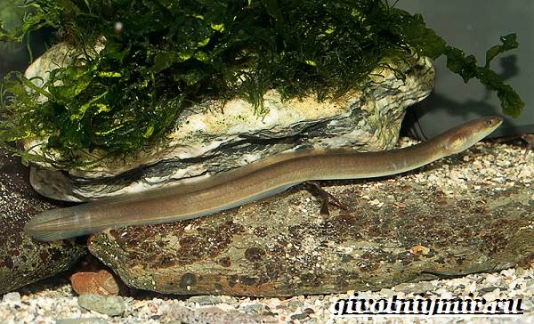 Она не похожа не привычный нам вид рыбы. Неопытные рыбаки могут принять его за змею.
