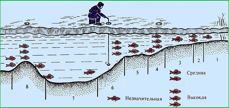 Прибыв на крупный водоем, придется пройти по льду вглубь, на расстояние не менее 0,5-1 километр. Только в таком случае можно рассчитывать на успех.