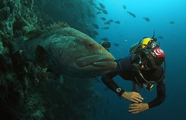Бывали случаи, когда случайно зацепившись, гигантские груперы утаскивали аквалангистов в глубь