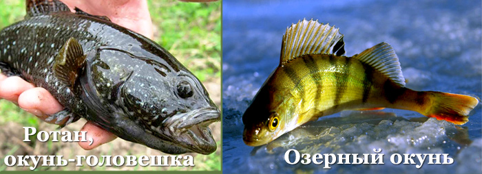 - окунь-головешка (головня, травянка, амурский бычок) – небольшой хищник семейства головешковых (Odontobutidae), который не является окуневой рыбой и имеет собственное общепринятое название – ротан;
