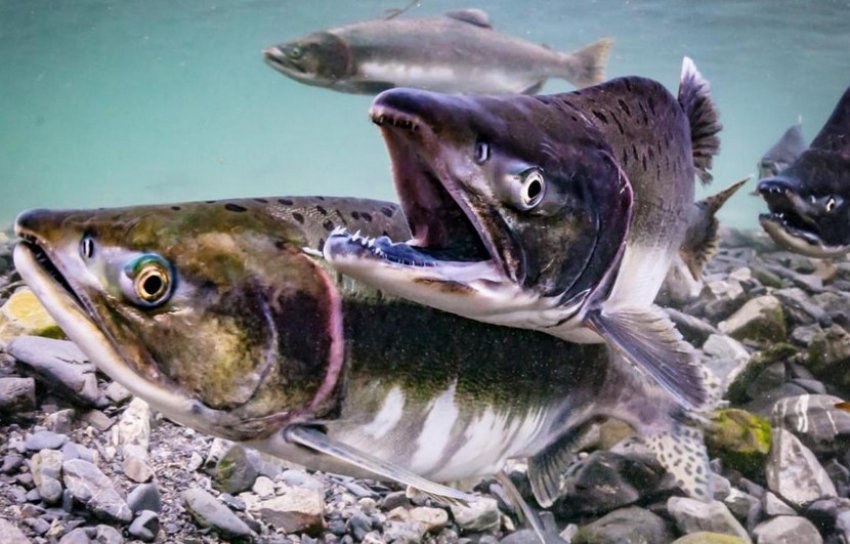 У самцов в этот период сильно меняются пропорции тела. На спине вырастает горб, челюсти сильно загибаются и удлиняются, увеличиваются зубы.