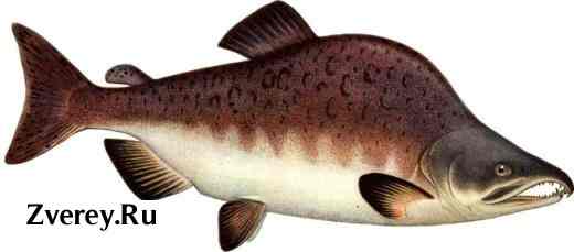 Интересный факт: Самым впечатляющим представителем семейства древних лососевых является вымерший «саблезубый лосось», который весил более двух центнеров при длине около 3 метров и имел пятисантиметровые клыки. При своем довольно грозном виде и внушительных размерах он не был хищником, а клыки являлись лишь частью «брачного наряда».