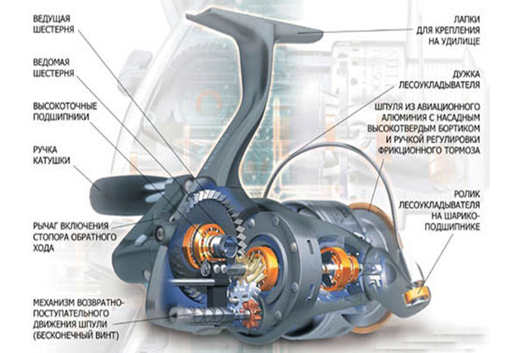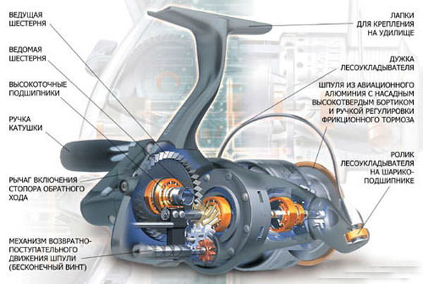 Но сам по себе он представляет довольно сложное устройство, которое состоит из различных элементов. Среди них следует выделить рыболовную катушку.