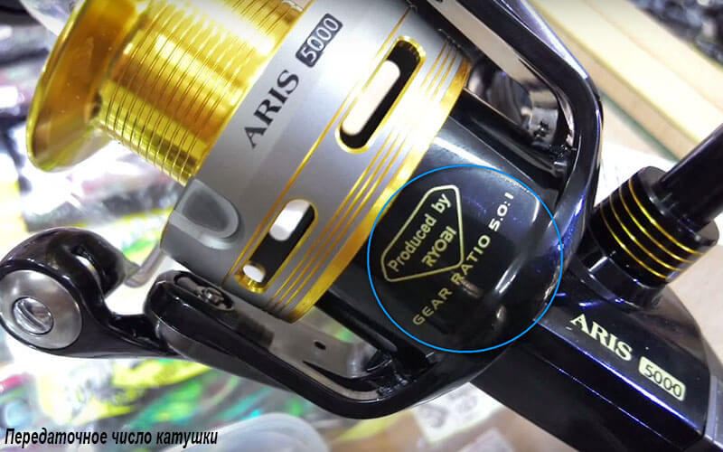 Передаточные числа показывают, сколько шпулька повернётся раз, если сделать один оборот рукояткой. Обычно маркировка отображается так: 5.0:1. В этом случае, при одном повороте рукоятки катушка с лесоукладчиком совершит пять оборотов вокруг оси.