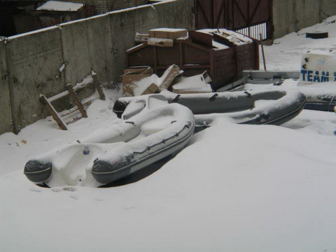 Зимой следует хранить лодку в надутом состоянии, хотя можно и в спущенном. В этом плане нет принципиальных требований: воздух от холода сужается, поэтому плавсредство тоже потеряет объем.