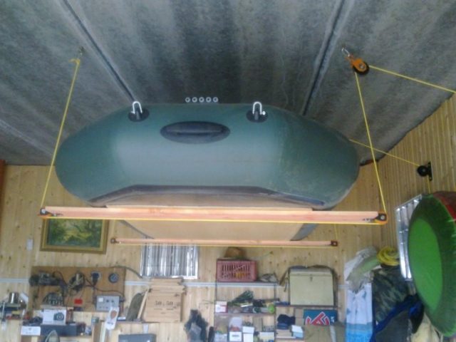 - лучше всего подвесить лодку к потолку в целях экономии места и предотвращения порчи грызунами;