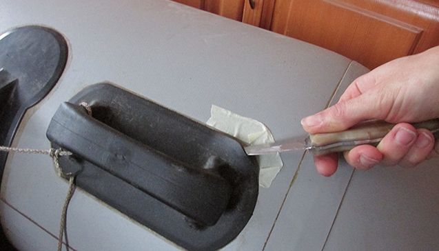 Теперь это место нужно обозначить, например, мелом. После этого, воздух с лодки стравляется, а лодка устанавливается на открытое пространство.