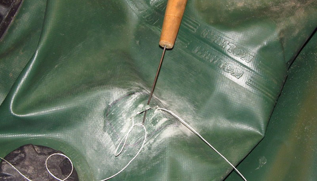 Поврежденный шов требует незамедлительного вмешательства рыбака с применением ремонтно-восстановительных инструментов. Производить восстановительные работы допустимо только на сухой поверхности.