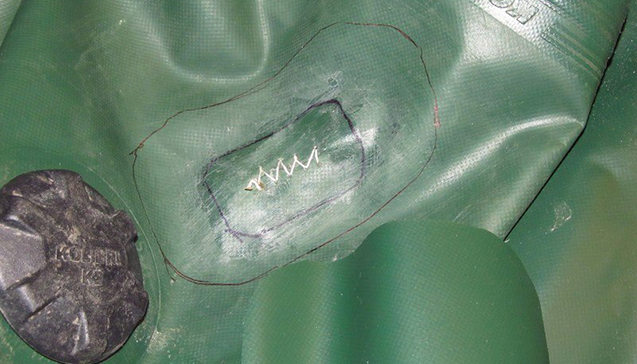 Когда место было обнаружено, его следует обвести вокруг водостойким маркером для того, чтобы, когда лодка была в сдутом виде легче было обнаружить дыру.
