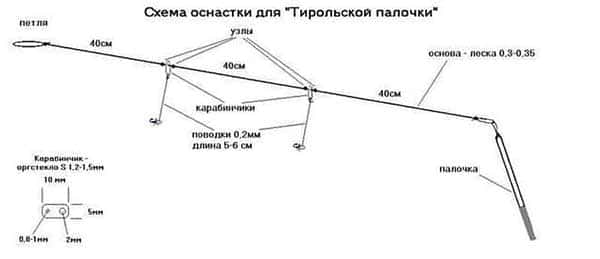 к содержанию ↑У этой снасти существует только один недостаток. В случае зацепа тирольская палочка вместе с приманкой останется на дне водоема.