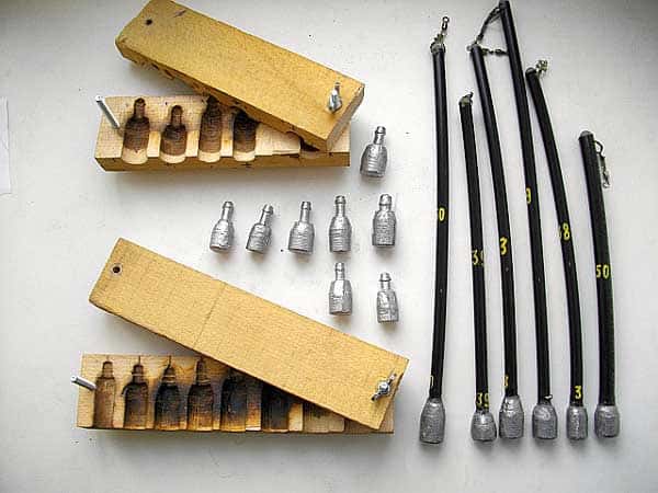 - В дыры заливается расплавленный свинец. После застывания груз извлекается из формы. При необходимости лишний свинец удаляется плоскогубцами.