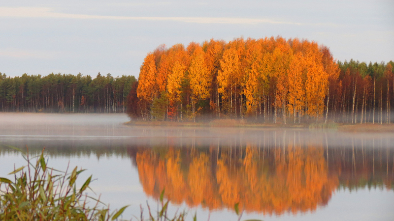 Все меньше становится световой день. Листья опадают и покрывают собой большие участки водоёмов.