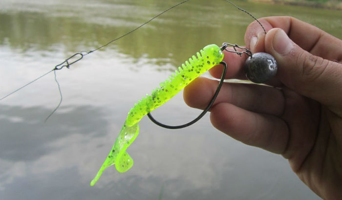 Отличными качествами обладают приманки с офсетными крючками. Такая конструкция позволяет облавливать закоряженные места, а также места, заросшие водной растительностью.