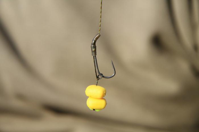 Используются крючки номер 8-16. Выбирают плоские зерна. Каждое зерно прокалывается посередине в самой широкой части. Для ловли карпа и сазана насаживают от двух до семи зерен.
