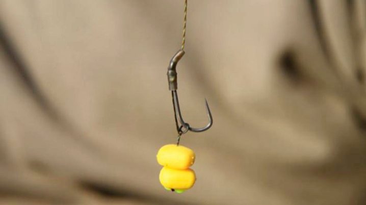 - Зафиксировать приманку. Хватит всего 3 зерен кукурузы. Предварительно в каждом из них продевается сквозное отверстие, расположенное по центру.