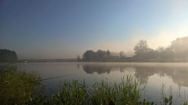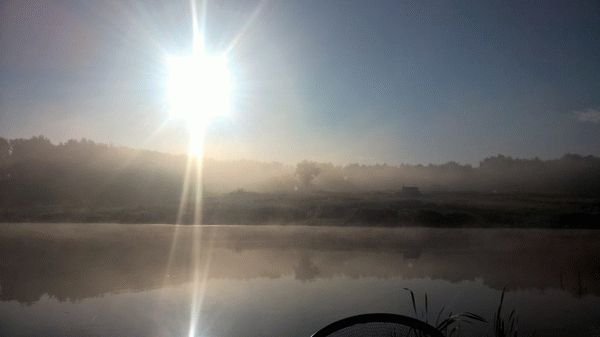 Погода замечательная. Стоял сильный туман. В этот день на большом водоёме было очень много народу. Поэтому я не смог встать там где хотел изначально. Пришлось выбирать из того, что было. Дальше меня ждала еще одна неприятность – сломался стул. Свернул одно из креплений телескопической ноги. Вот и пришлось сидеть на обычном раскладном стульчике.