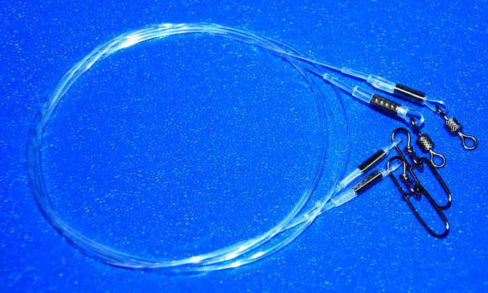 Для того чтобы избежать сходов рыбы хорошо применять металлические поводки. Их можно изготовить самостоятельно, например, из стальной или посеребренной гитарной струны толщиной 0,08 – 1 мм. Оптимальная длина 10 – 15 см.