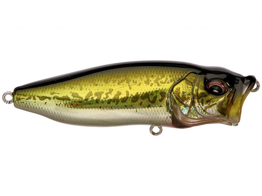 - Megabass Pop Max – это приманка поверхностного типа. Более высокая цена, чем у предыдущих приманок, обусловлена более сложным строением искусственной рыбки. Задняя часть оснащена двумя грузами. В области головы находится водяная камера, которая имеет шесть отверстий. Это обеспечивает очень интересующий рыбу громкий звук. Приманка качественная, ее покрытие не стирается, позволяя сохранить окраску очень долго. Вес – 14 грамм, длина – 8 см.