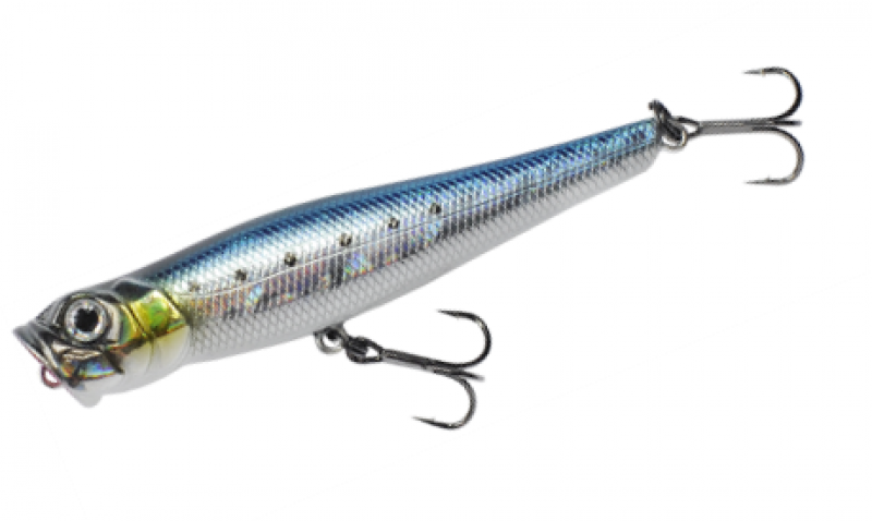 При длине 85 мм она весит 9,2 г. Благодаря прогонистому телу поппер далеко летит, а в воде ведет себя очень натурально.