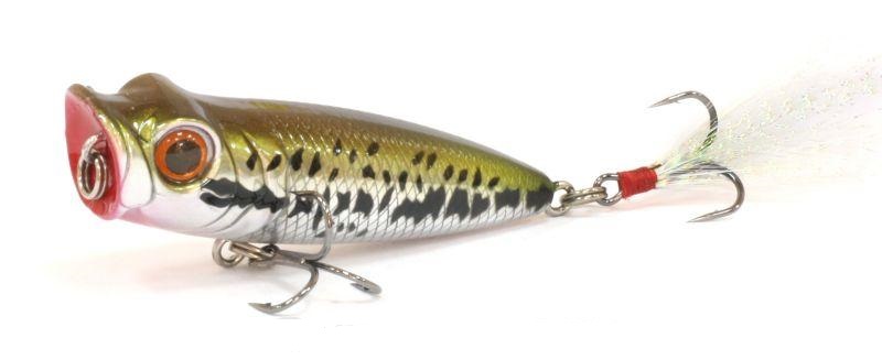 - Strike Pro. Strike pop 40 / JL-196 – дешевый, но весьма популярный поппер. Длина рыбки всего 4 см, а вес – 7.3 грамма. Огромный выбор различных цветов и оттенков понравится любому рыбаку. Такая приманка подойдет для рыбалки на мелководье на щуку, окуня, жереха.